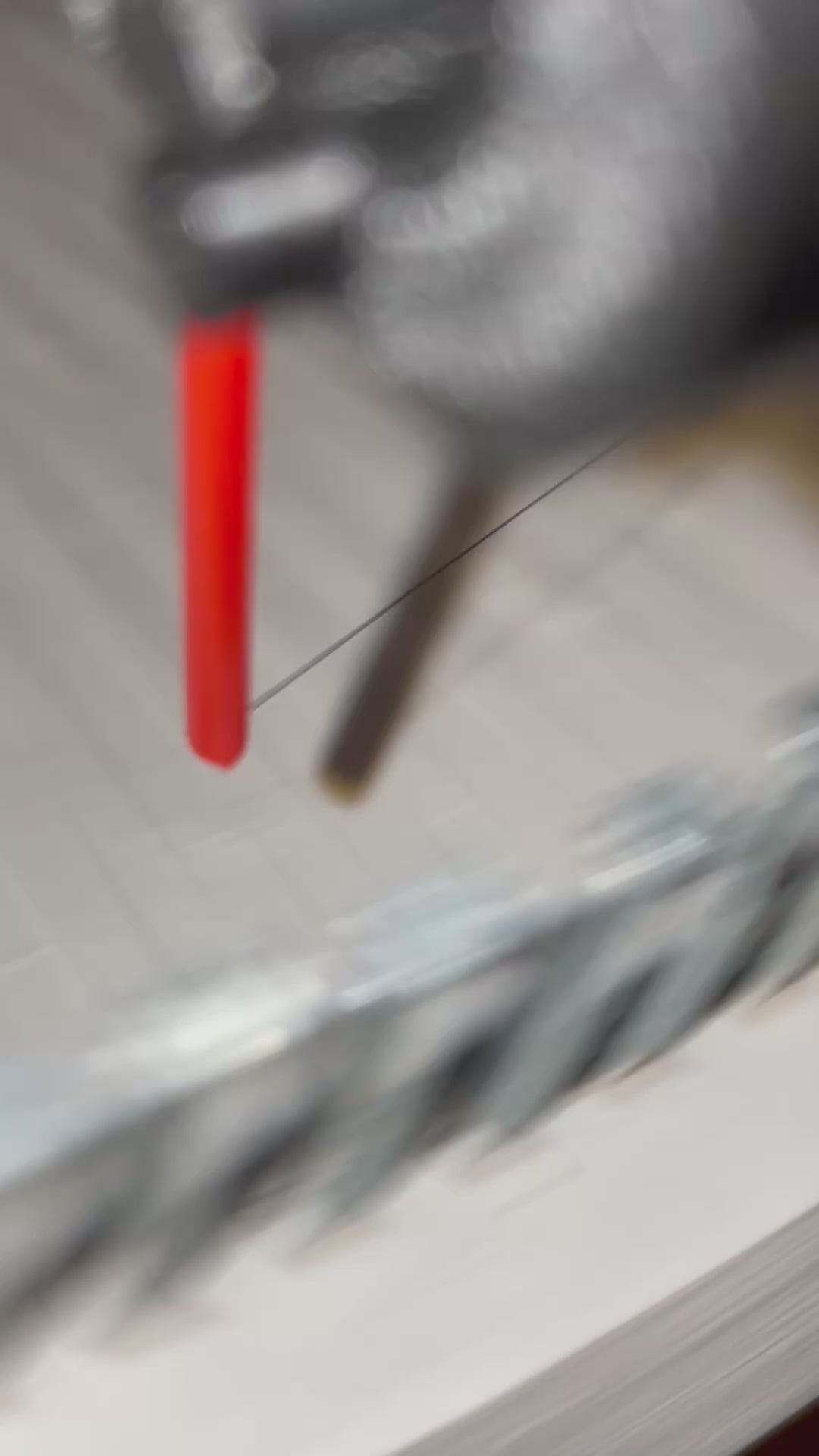 Flexible red tubing bends around nails without breaking (lasts for 5-10 full pieces and easy to replace)